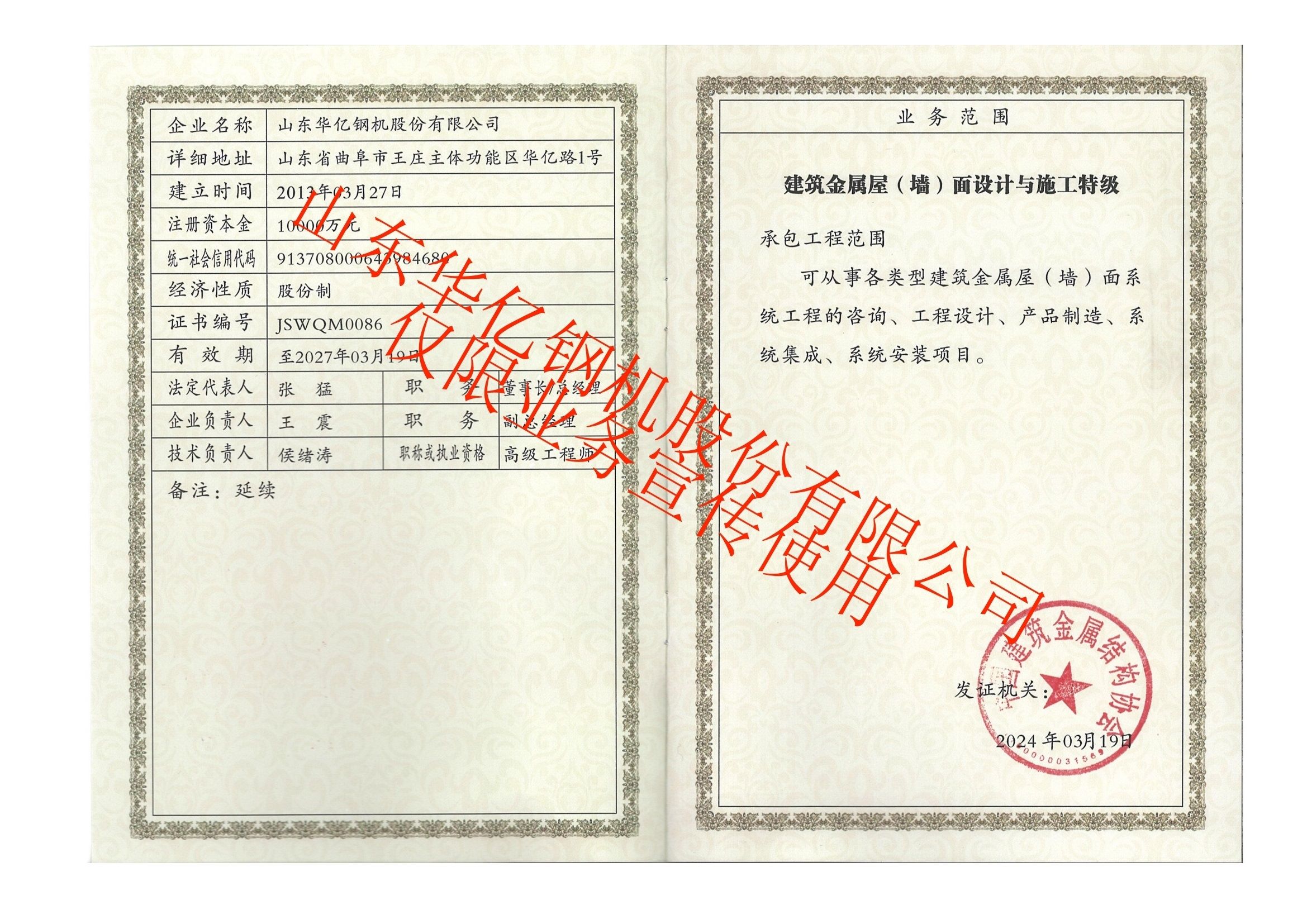 建筑金屬屋(墻)面設(shè)計(jì)與施工特級(jí)
